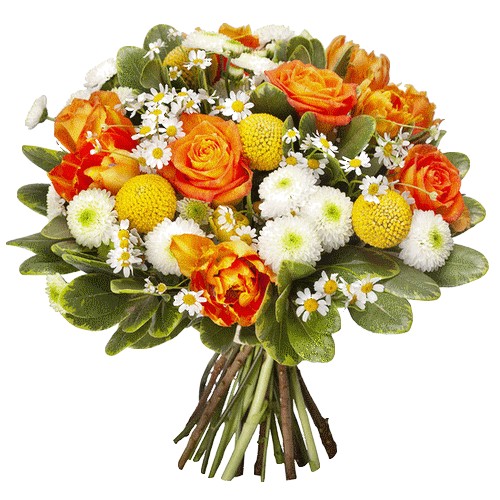 Bouquet coloré avec jonquilles et autres fleurs de saison.