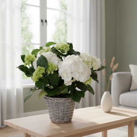 Pourquoi cette plante va vous séduire : D’abord, ses larges pompons blancs captent la lumière et agrandissent l’espace. Enfin, cette variété robuste fleurit longtemps, ce qui en fait un cadeau durable et mémorable.