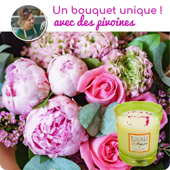 Ce bouquet sera accompagné d’une bougie parfumée de haute qualité. Deux options bougie de 70 gr ou 190 grammes.