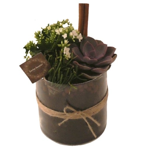 Dans un contenant, en verre transparent se trouvent, assemblés, succulent, rhipsalis et kalenchoe.