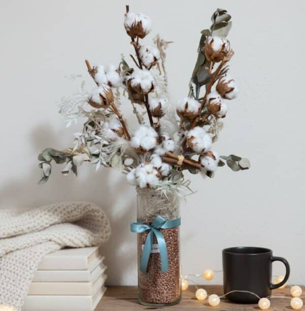 Versailles : bouquet de fleurs séchées avec vase.